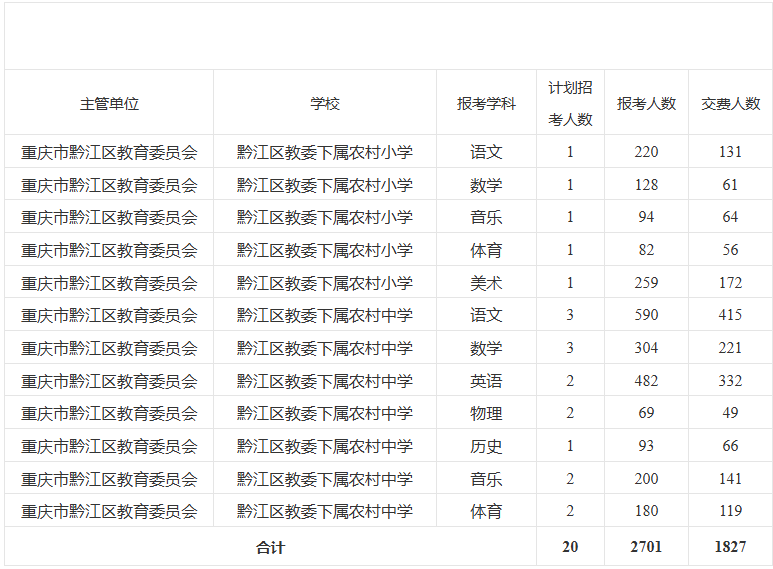 2025年重慶市特崗教師招聘最終報名統計1827人