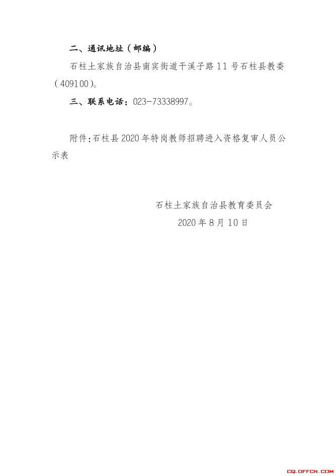 點擊下載>>>2020重慶石柱特崗教師招聘資格復(fù)審名單