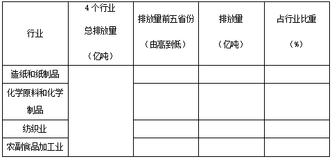 根據題干可知本題由一個任務構成,即繪制一張“2012年重點工業行業廢水排放情況表”,全面、準確反映資料的所有信息。